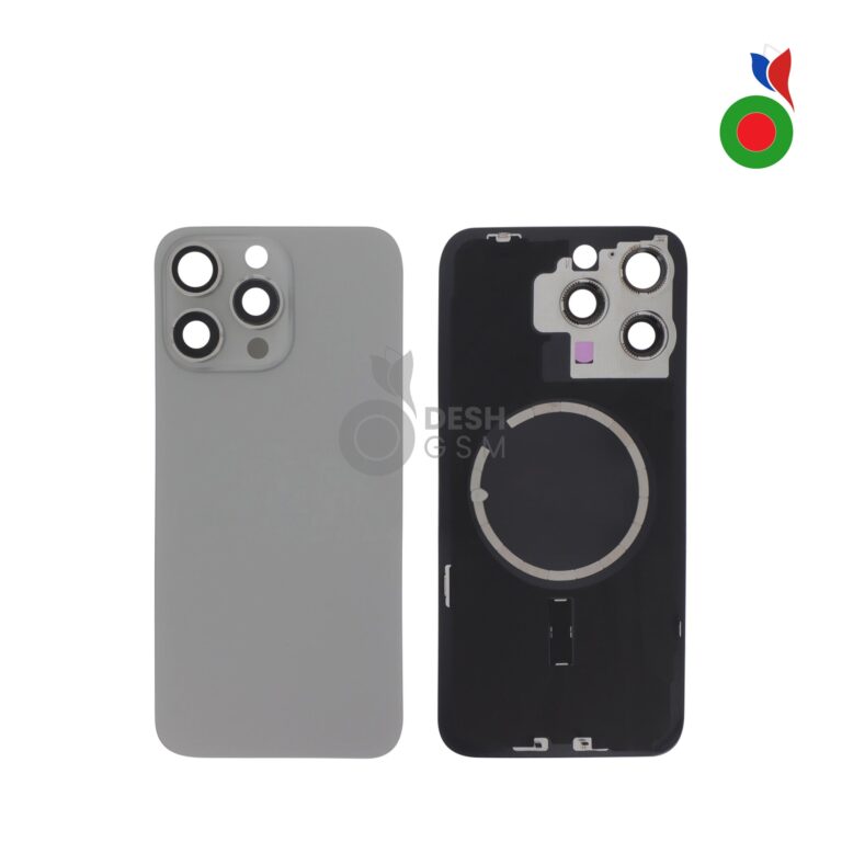 Vitre Arrière Complète avec MagSafe – iPhone 15 Pro | TITANE NATUREL – Sans Logo